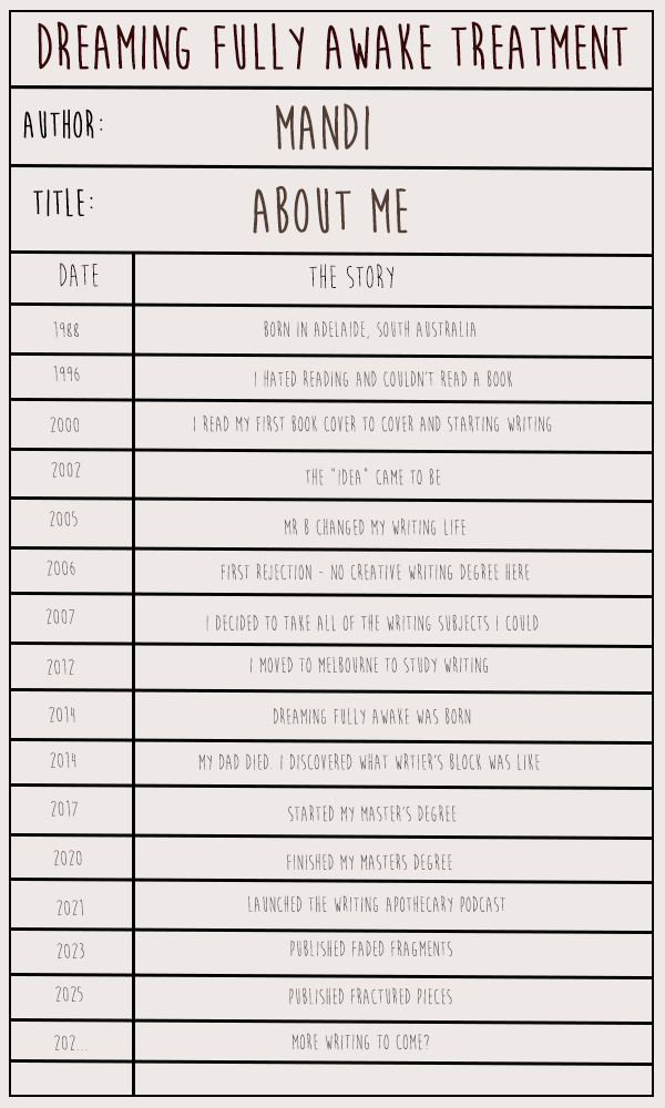 My name’s Mandi and wrting helped me escape. It was my therapy when I was a teenager and diving into the different worlds where everything what magickal, mystical and full of wonder was my biggest joy.